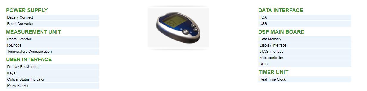 持式電化學血糖儀使用戶可以在任何時間、任何地點測試自己的血糖水平。這些設(shè)備對于患有糖尿病的人來說是非常方便的工具。治療計劃中可包括頻繁監(jiān)測。單個測量值可以存儲在設(shè)備的內(nèi)部存儲器中。數(shù)據(jù)隨后可通過usb或irda接口傳送到pc以供進一步檢查。新一代的電化學裝置可避免將受血液污染的測試條插入裝置。這確保符合嚴格的衛(wèi)生標準。