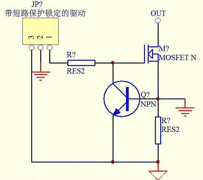 電路中存在短路時(shí),流過(guò)MOS管電流值大,S極電阻兩端產(chǎn)生壓降后,致三極管由截止進(jìn)入導(dǎo)通,此時(shí)驅(qū)動(dòng)電阻有壓降,MOS管進(jìn)入放大區(qū),高電壓不過(guò)MOS管進(jìn)行強(qiáng)行電流放電,