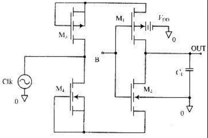 實(shí)現(xiàn)電路,將靜態(tài)CMOS電路構(gòu)成的與非門、或非門和異或門的電源時(shí)鐘電路代替。
