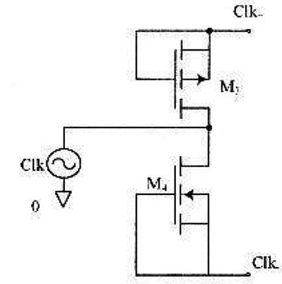 Clk+接PMOS管D極,Clk-接NMOS管S極。
