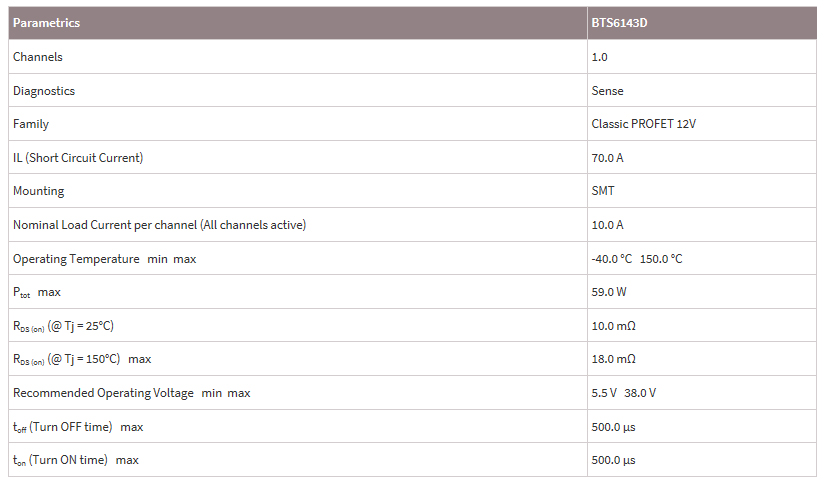 英飛凌MOS場效應(yīng)管BTS6143D參數(shù)